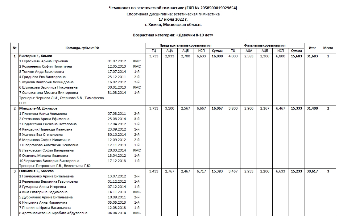 После завершения всех выступлений, вы можете сформировать соответствующий Итоговый протокол: