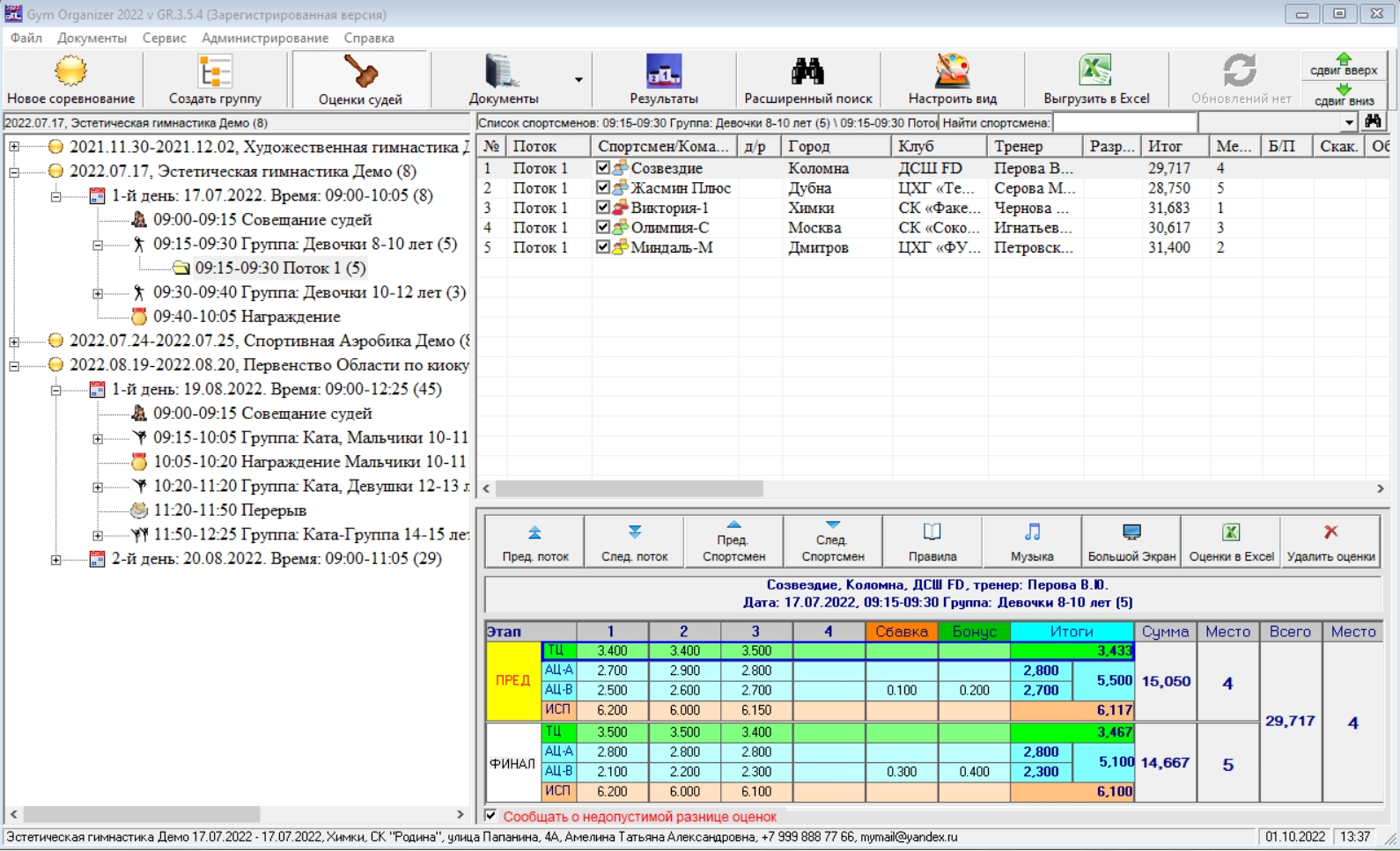 В программах GymOrganizer и GymNetOrganizer реализована возможность проводить соревнования по Эстетической Гимнастике (ЭГ).