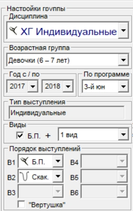 Так же, в случае необходимости все настройки группы (за исключением типа выступления) можно будет изменить в главном окне соревнования: