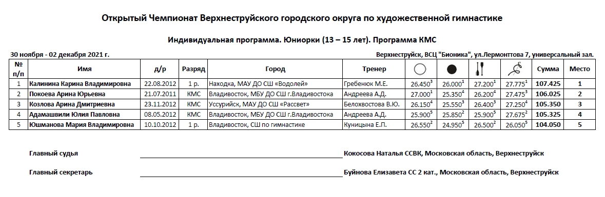 После завершения всех выступлений, вы можете сформировать соответствующий Итоговый протокол: