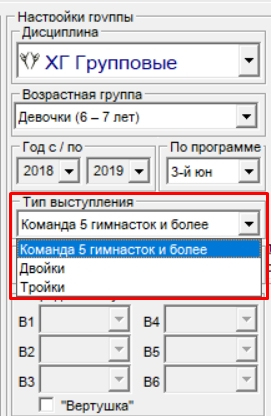 Укажите "Тип выступления" (просто групповыая команда, двойки, тройки)