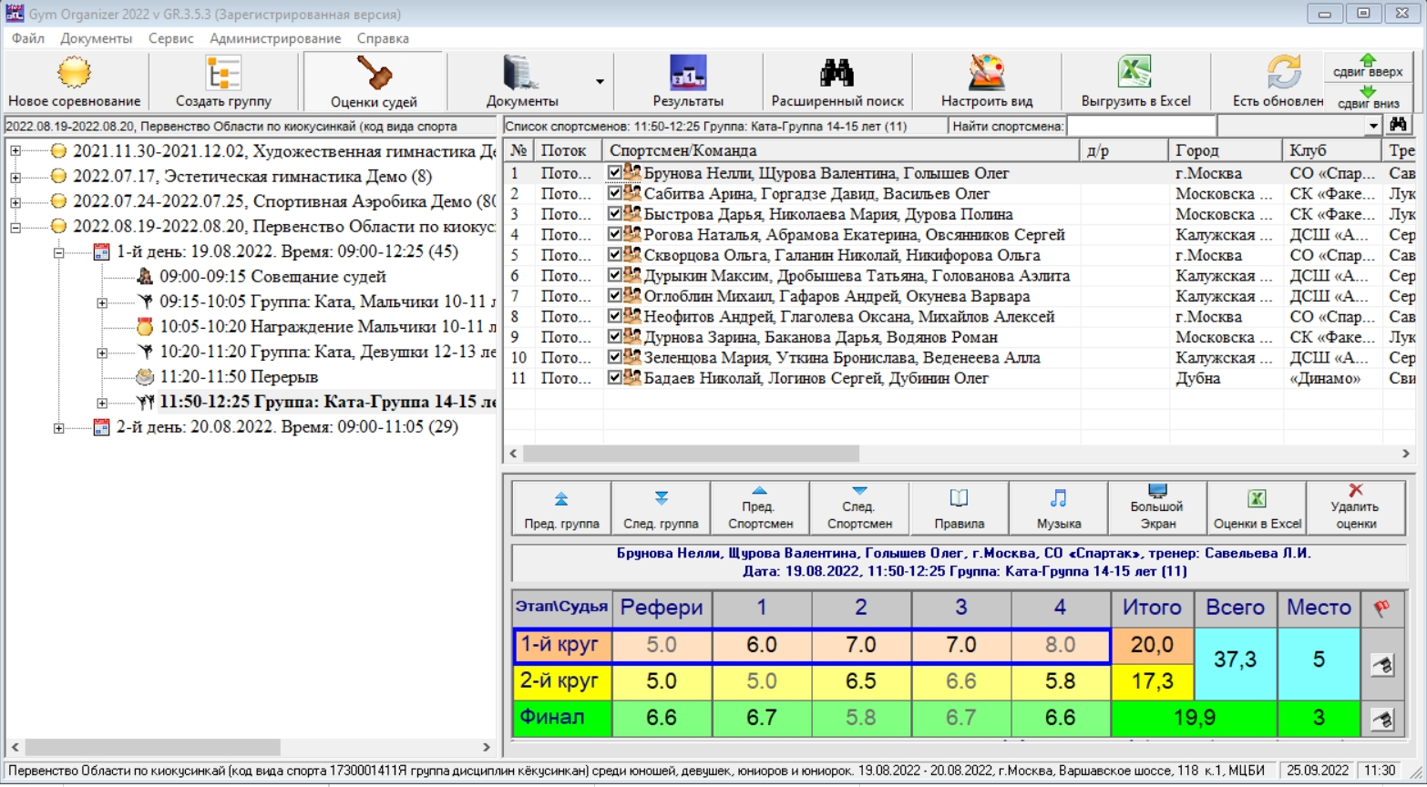 В программах GymOrganizer и GymNetOrganizer реализована возможность проводить соревнования по ката Киокусинкай.