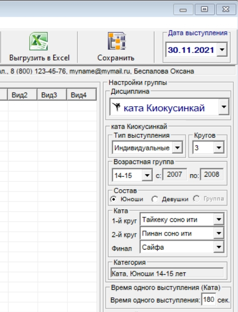 Список участников можно загрузить вручную или из файла Excel. Для индивидуальных упражнений участники загружаются стандартным образом, как и в Художественной гимнастике. Для ката-группы загрузка несколько отличается.