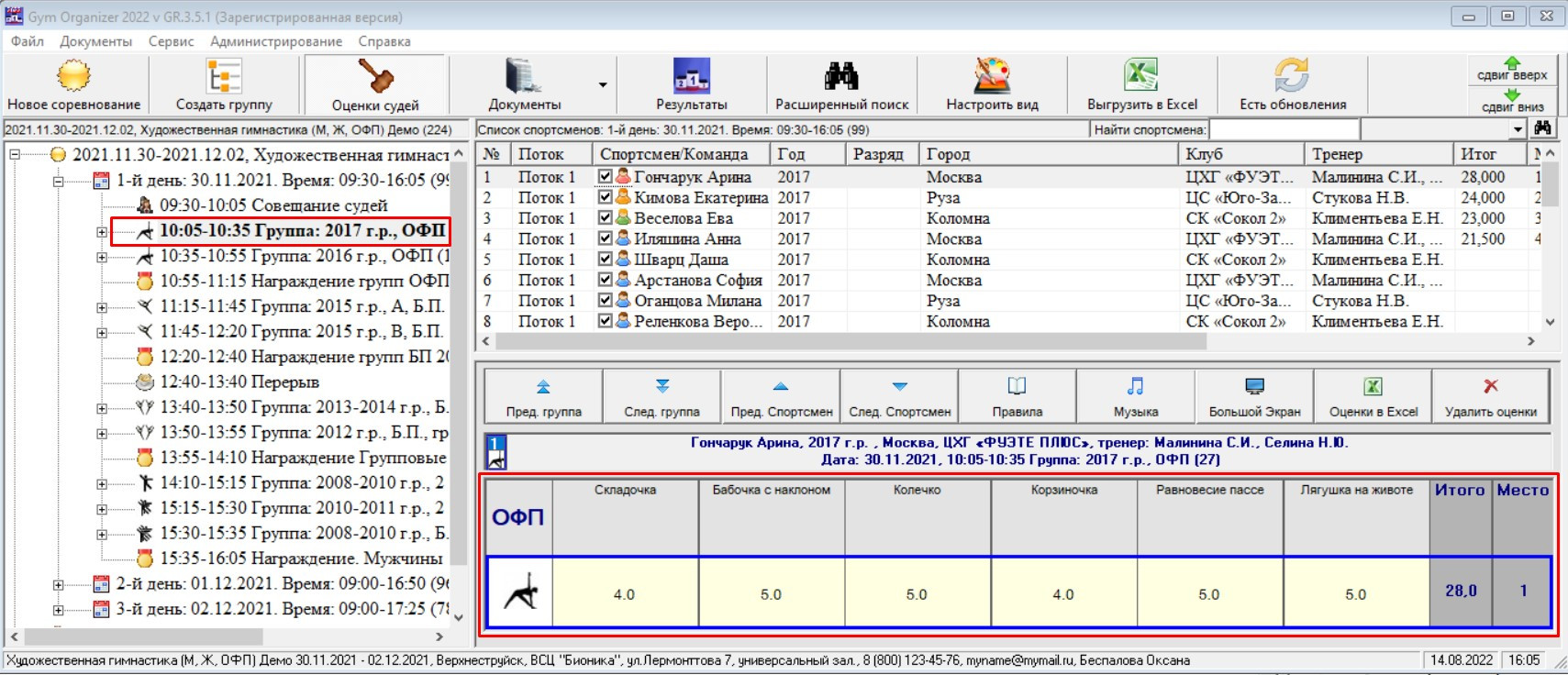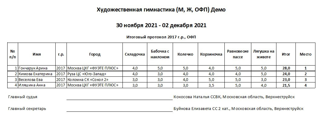 После завершения всех выступлений, вы можете сформировать соответствующий Итоговый протокол: