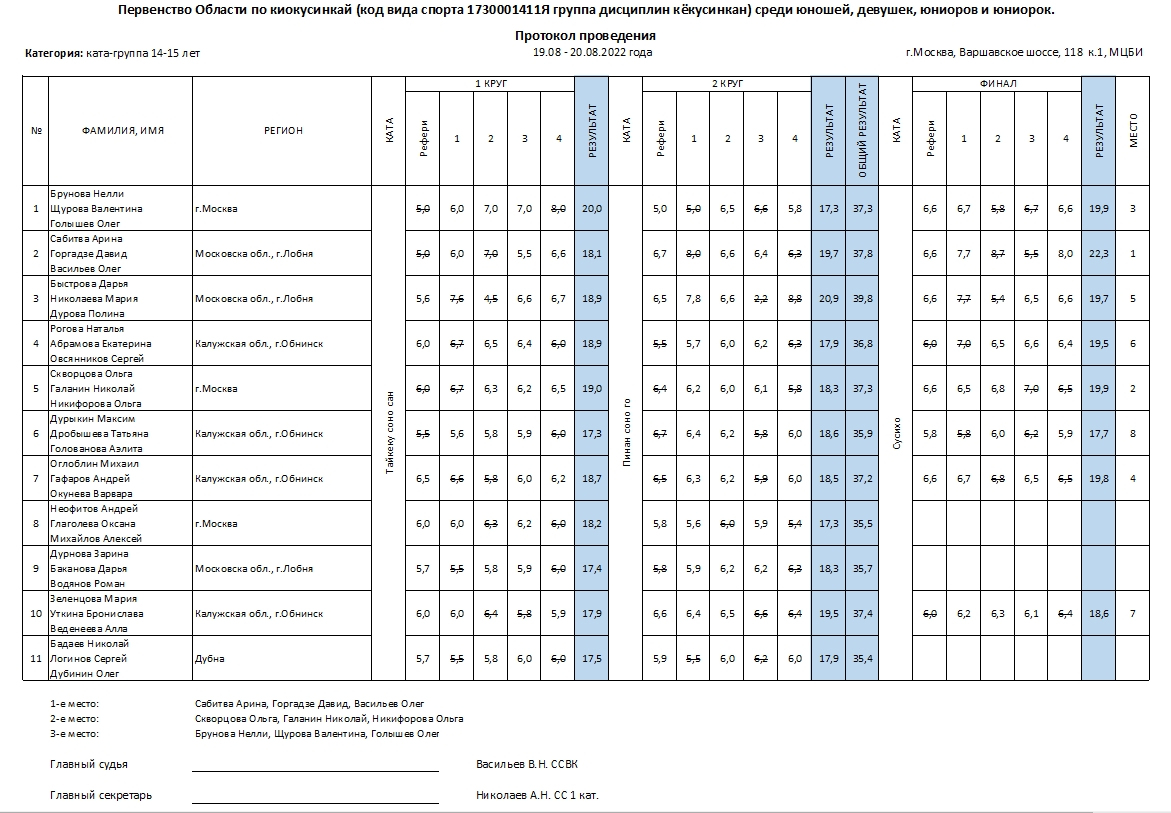 В программах GymOrganizer и GymNetOrganizer реализована возможность проводить соревнования по ката Киокусинкай.