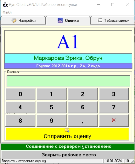 Программа GymClient (РМ Судьи) и программа GymMain (РМ Главного судьи) не требуют кода активации. (в пробной версии существует ограничение на количество подключенных рабочих мест Судей, включая Главного судью – не более 3-х. Мы считаем, этого вполне достаточно для тестирования всех возможностей программы).